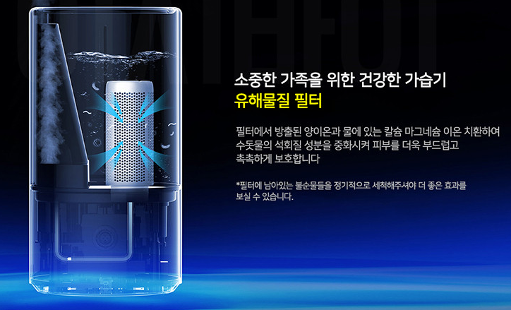 또한, 가습기의 본분인 습도 유지만큼 중요한 것이 바로 '살균'입니다. 가습기는 호흡기에 직접 영향을 미치기 때문인데요. 물이 거의 기체화 되어 더 흡수가 잘 되어 바로 세균이 체내 흡수될 수 있습니다.