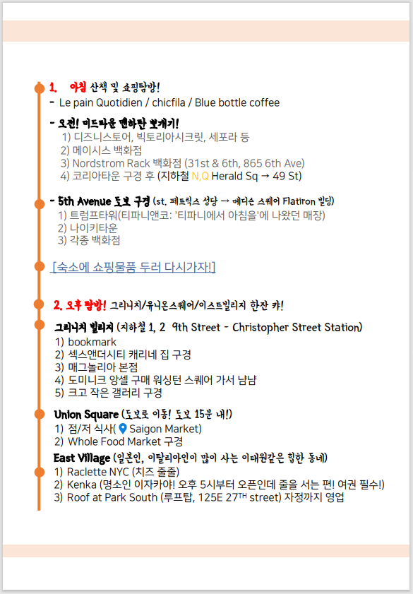 오늘은 이렇게 3일 차 까지만 공개하겠습니다! 다음 포스팅에서는 뉴욕 여행 나머지 코스와 셀프 가이드북 디자인도 공개할게요.