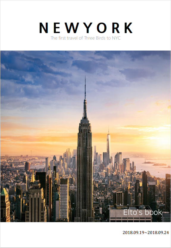 여행의 그리움을 안고 여행 사진을 정리하던 중, 2년 전 만들었던 여행 책자가 눈에 띄더라고요. 2018년 결혼 직전, 웨딩촬영 겸 떠났던 뉴욕 여행이었고, 나름 여행의 호스트로서 셀프 여행 가이드북까지 만들게 된 것이지요.