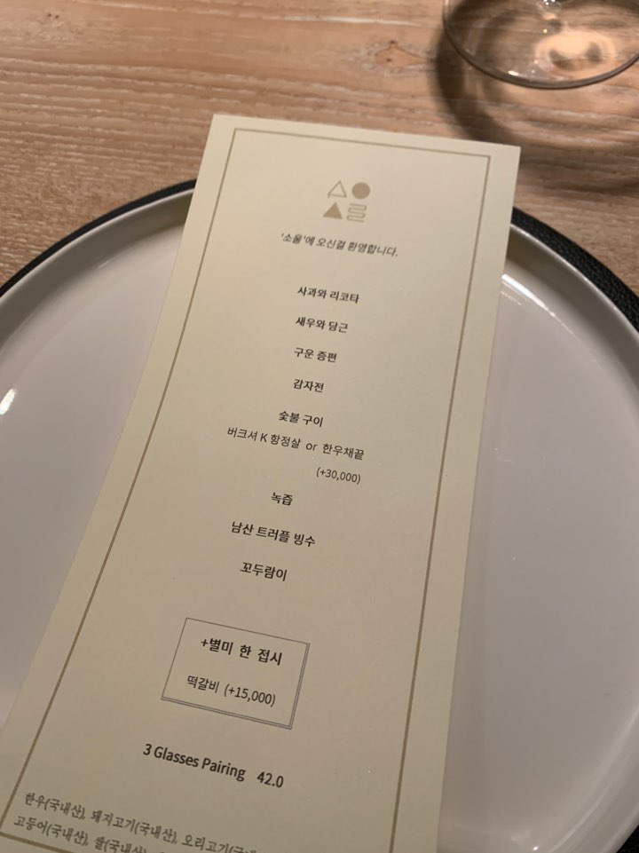 결혼기념일 2주년 맛집으로 갔던 "한식 파인 다이닝 소울"을 소개하려고 합니다. 소울 다이닝은 반포동 '스와니예'의 오픈 멤버이자, 방배동 '도우 룸'의 헤드 셰프 출신인 셰프님이 아내분과 오픈한 맛집이에요.