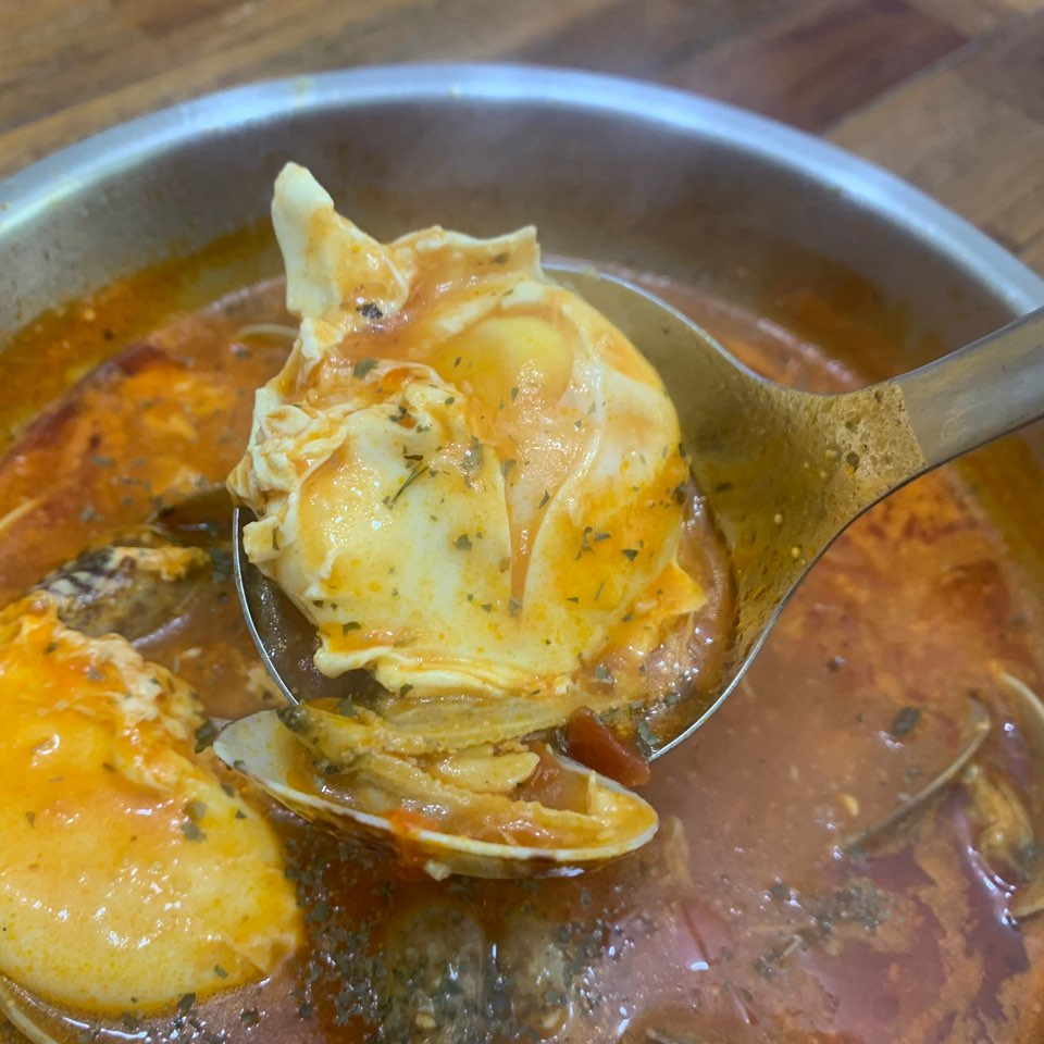 일반적인 해물탕이 아닌 올리브오일과 토마토가 합쳐진 해물탕 느낌이에요. 크리스마스나 연말에 와인이나 맥주에 어울리는 해산물 토마토 스튜라고 보시면 되겠네요 :)