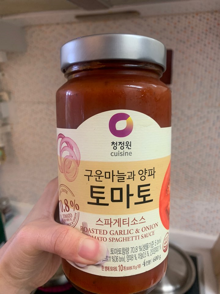 STEP 5. 준비된 토마토소스를 3T 정도 넣고 끓어주세요. 다 끓으면 간을 보고 적당량의 소금이나 후추를 추가하시면 됩니다! (웬만하면 바로 간이 맞을 거예요!)