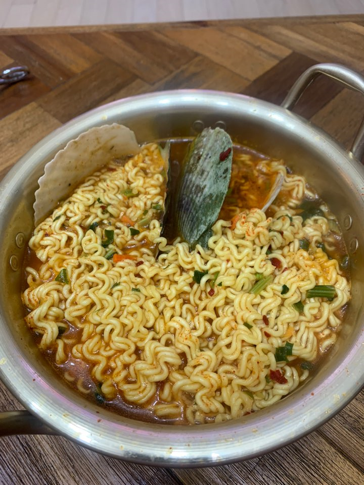 짠! 바로 가리비열라면 입니다! 해감한 가리비를 잘 세척해서 2~3개 정도 넣어줬어요.