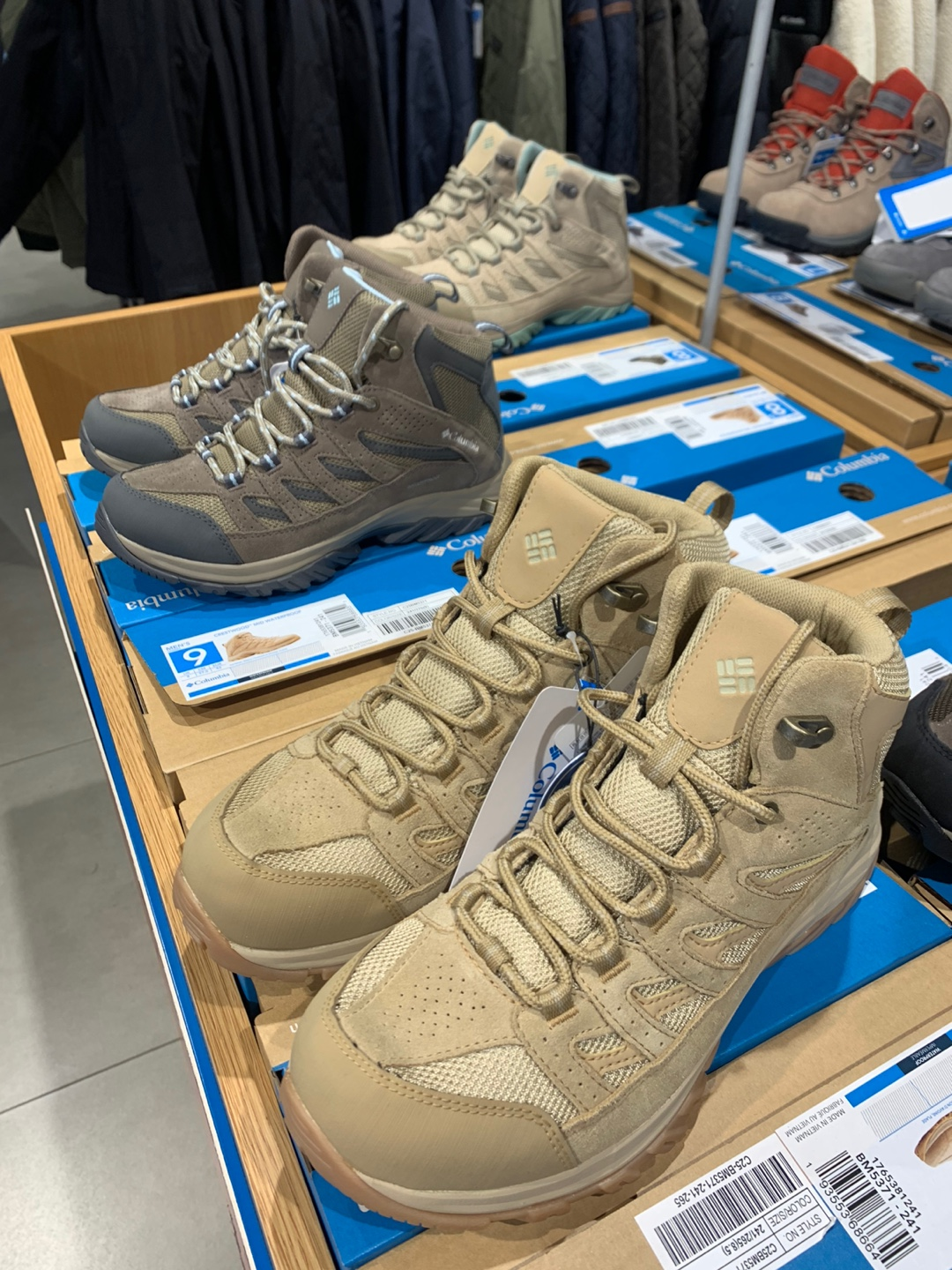 노스페이스 K2 등 다양한 매장을 가본 결과 우리 눈을 사로잡은 건 컬럼비아의 신상 등산화였답니다.