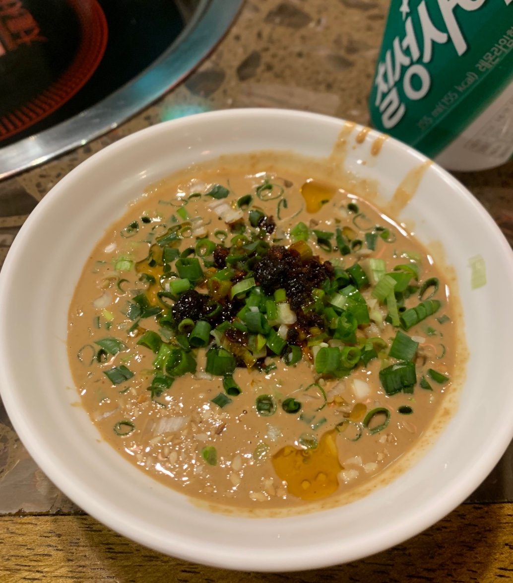 앉아만 있었는데도 홍탕에서의 향에 정신이 혼미해집니다. 제가 먹어본 홍탕 비슷한 것들 중에 가장 셌어요 :) 가리봉동에서 먹었던 마라탕보다 조금 더 센 향신료+매운 향.