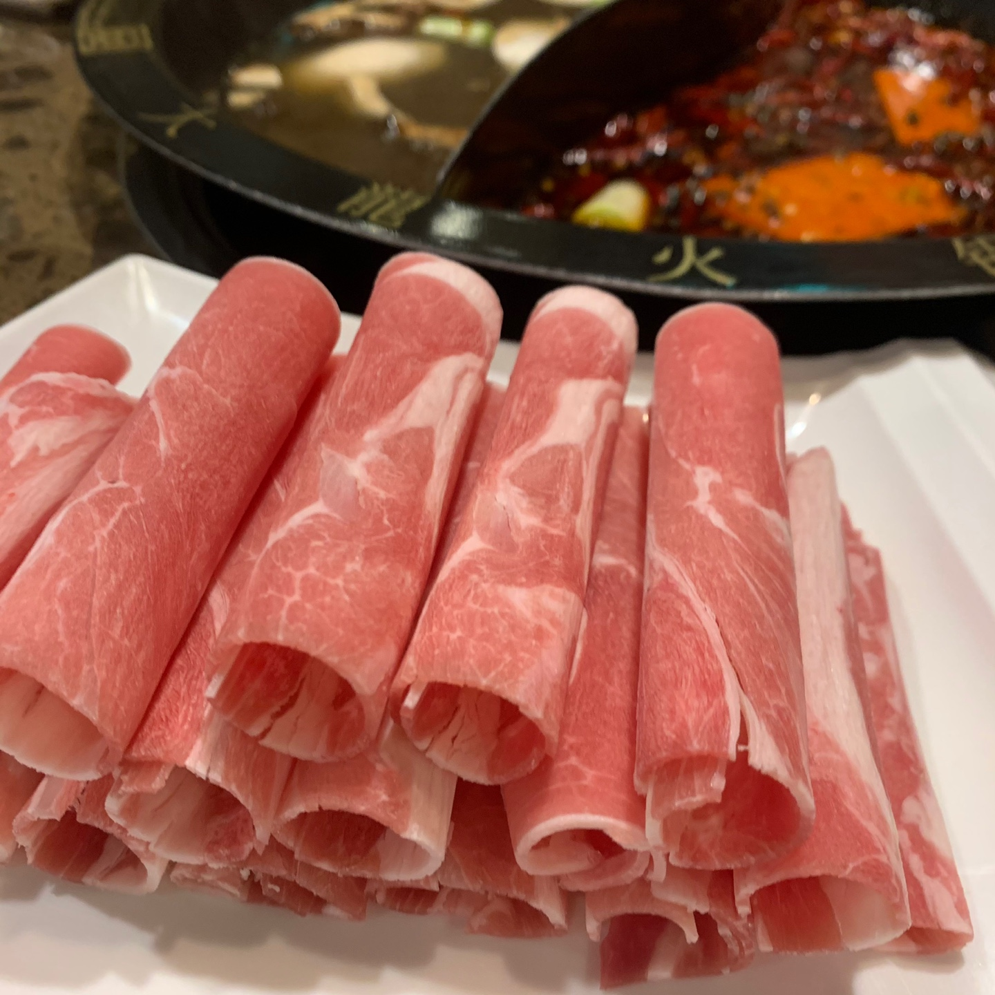 향신료가 너무 강해서 먹기 힘들 정도는 결코 아니에요. 전 그런 음식은 아예 못 먹는 편이에요! 제대로 된 차림의 훠궈를 먹는 느낌이지만, 저처럼 이미 한국식 훠궈에 길들여진 사람에게는 '홍탕'이 조금 셌어요. (끓일수록 더 매워지긴 했지만요.)