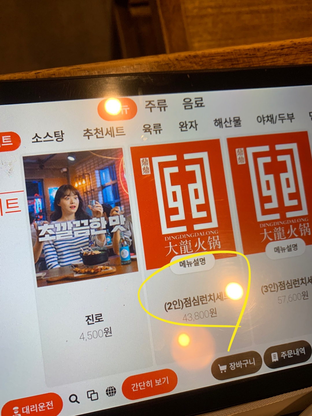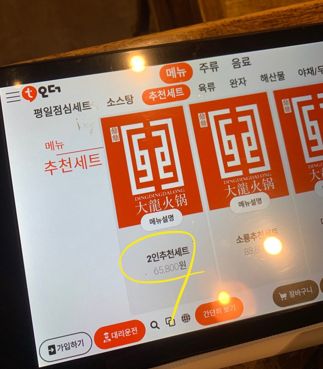 기다림 끝에 자리에 앉아 태블릿 PC로 음식을 주문합니다. 주말이라 런치 세트는 적용이 안돼서 2인 추천세트를 시켰어요.