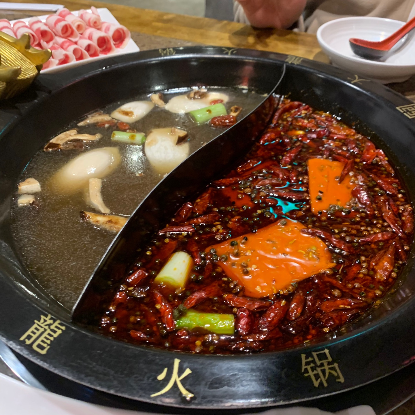 칼칼한 홍탕 그리고 담백한 육탕! 기름기 있는 고기를 땅콩소스에 찍어먹는 그 '훠궈'가 유난스레 먹고싶던 어느 날. 저는 송도 길가에서 단번에 눈을 사로잡던 화려한 간판 '따룽훠궈'를 기억해내고야 맙니다.