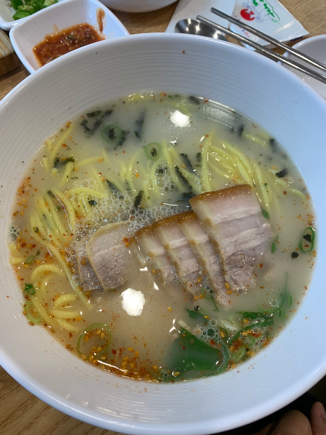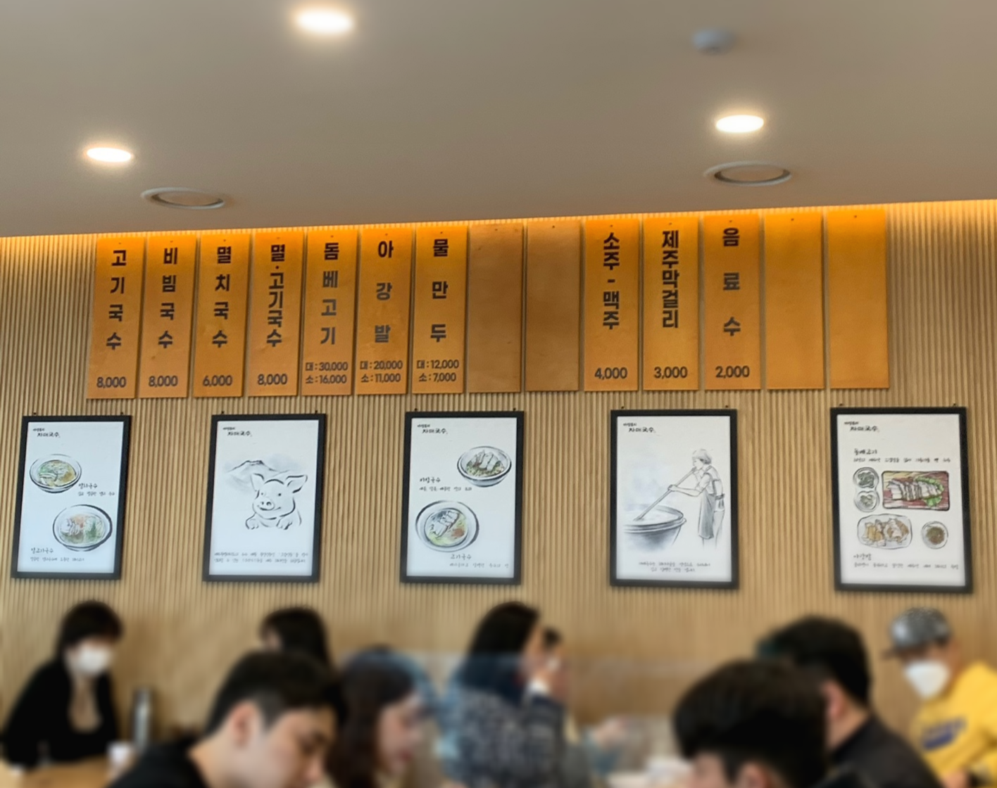 꽤 넓은 매장에 식탁마다 가림막이 있었어요. 인구 밀도를 고려하면 이곳 역시 두렵지만, 최소한의 위생적인 개념이 있는 곳이니 괜찮은 것 같아요. 시장 쪽 유명한 '고기국수' 맛집들 중 위생을 포기해야 하는 곳이 꽤 되니까요.