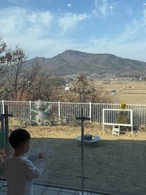 체크아웃 전에는 바깥 마당에서 아이들이 신나게 뛰어놀 수 있었어요. 잔디가 깔려 있어서 넘어져도 걱정 없고, 마지막까지 에너지를 발산할 수 있어서 너무 좋았어요.